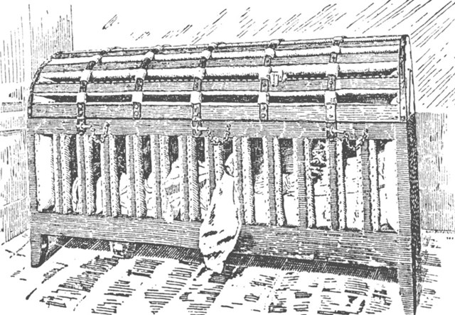 Foto: Arkiv.dk / Skitse over hvordan en dårekiste kunne have set ud