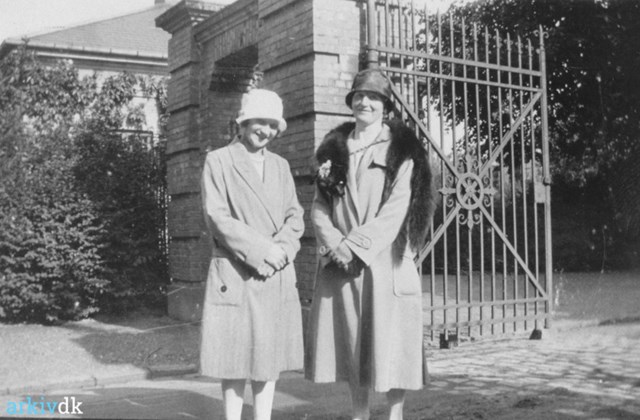 Foto: Arkiv.dk / To kvinder ved porten til Psykiatrisk Hospital i Risskov