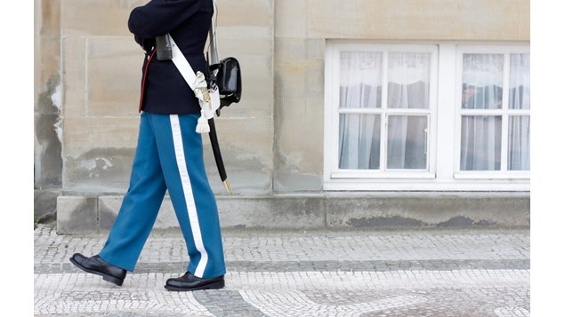 - 11.45: Den Kongelige Livgardes Musikkorps og tiltrædende vagt marcherer fra Gardergården til slottet.