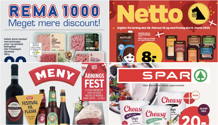 Rema 1000 tilbyder hakket dansk oksekød med grøntsager, grise- og kalvekød, kyllingekød eller Frilandsgris skinkekød til kun 29 kr. for 400 g. Tilbuddet gælder fra søndag 1. marts til lørdag 7. marts.