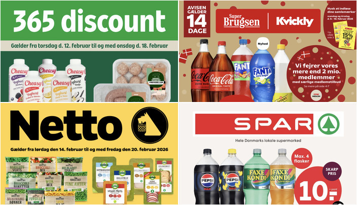 Hos Rema 1000 kan du få 1,25-1,5 liter Coca-Cola, Fanta eller Schweppes til kun 12 kr. pr. flaske. Tilbuddet gælder fra søndag 15. februar til lørdag 21. februar.