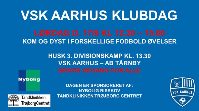 Klokken 13.30 spilles 3. divisionskampen VSK Aarhus vs. AB Tårnby på Vejlby stadion - og der er gratis adgang for alle.