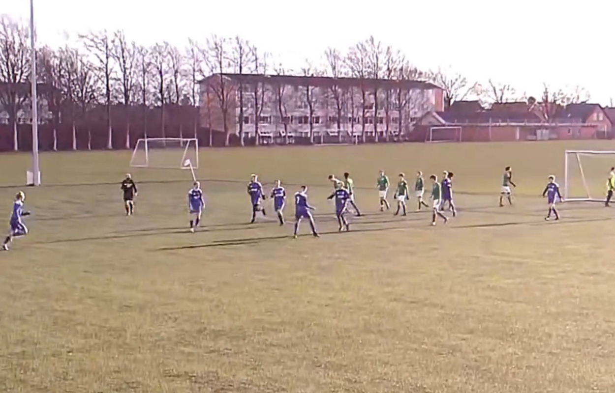 Vores CF Mikkel Rasmussen har været ude de sidste 14 dage med corona og kommer direkte fra sengen til grønsværen og formår at score vores 2 mål.