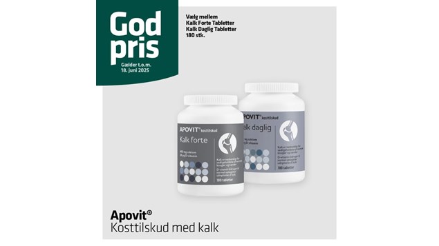 Med Apovit Kalk Forte eller Kalk Daglig tabletter får du en enkelt tablet med både kalk og D-vitamin, så du kan få den maksimale effekt af tilskuddet!