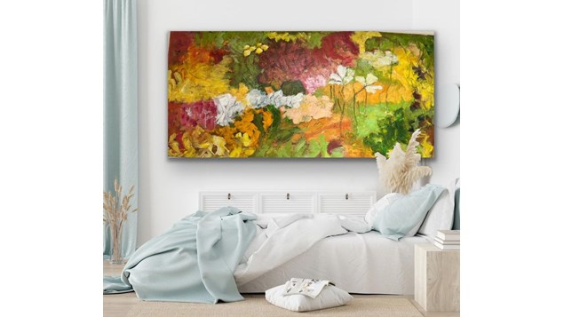 Så er det sommer hedder dette glade og positive maleri, selv om det lige nu regner udenfor , men husk, at bag hver er grå og tung sky, er der altid lys.